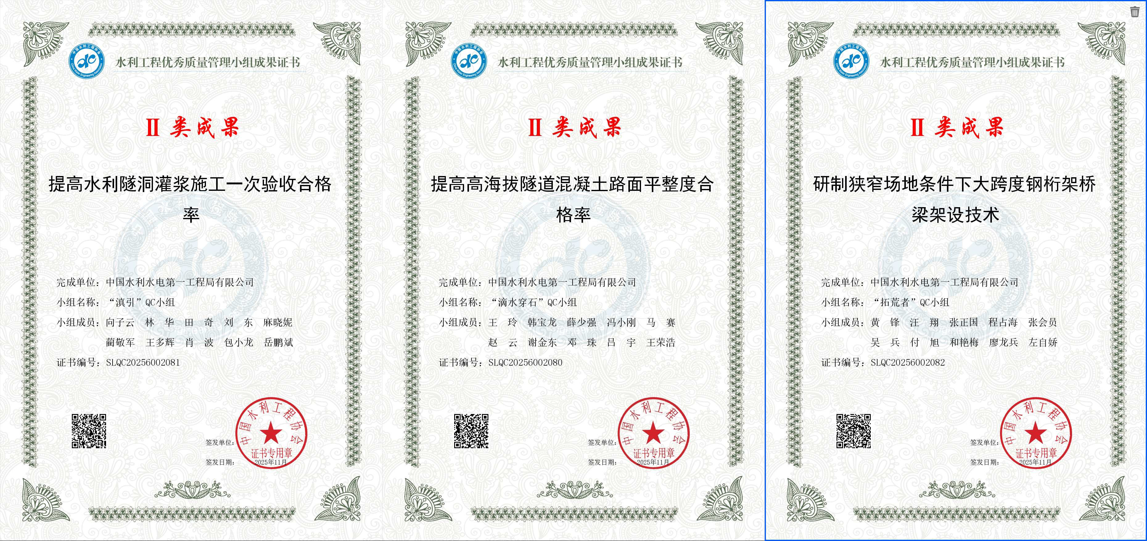 喜報!公司7項成果入選全國水利工程優秀質量管理獎